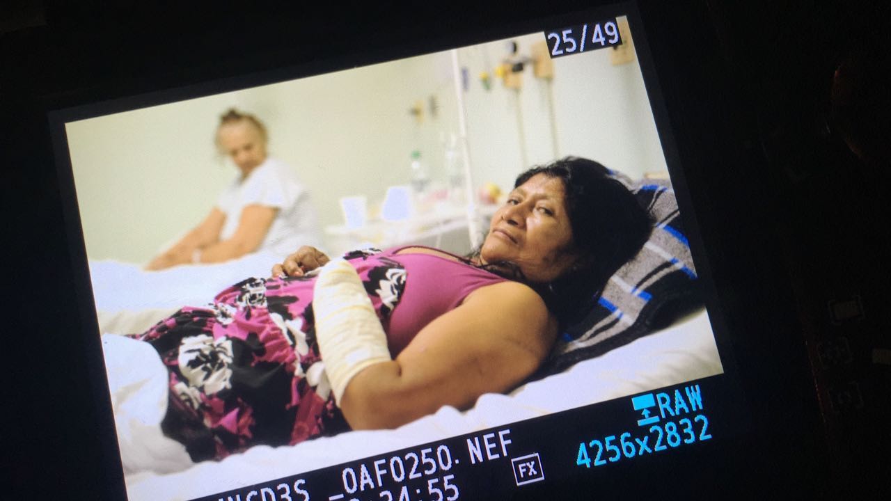 Ela já estava na aldeia quando a reencontrei na quinta, dia 23. O coto da mão cortada estava enrolado em bandagens encardidas. Tinha os cabelos desgrenhados, vestia roupas surradas, o esmalte vermelho descascando das unhas da mão que lhe sobrou.